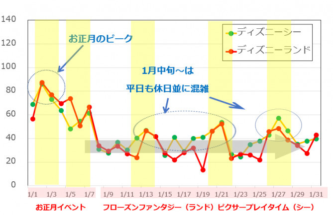 混雑予想 年1月のディズニーはお正月 冬イベント 冬休み 3連休